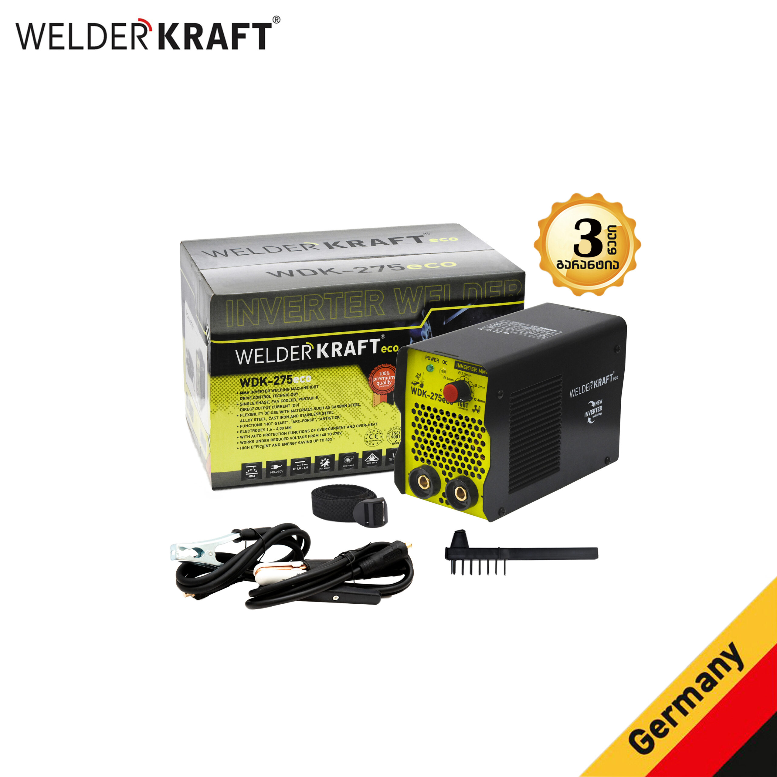 • შედუღების კაბელის სიგრძე: 2,5 მ + 2 მ